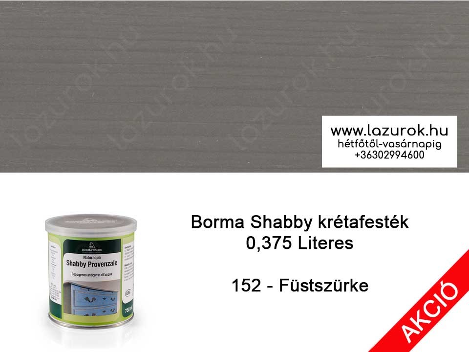 Borma krétafesték, füstszürke színű krétafesték, shabby krétafesték, krétafesték budapest, krétafesték kiszállítás, Borma Shabby füst szürke krétafesték 0,375l termék.