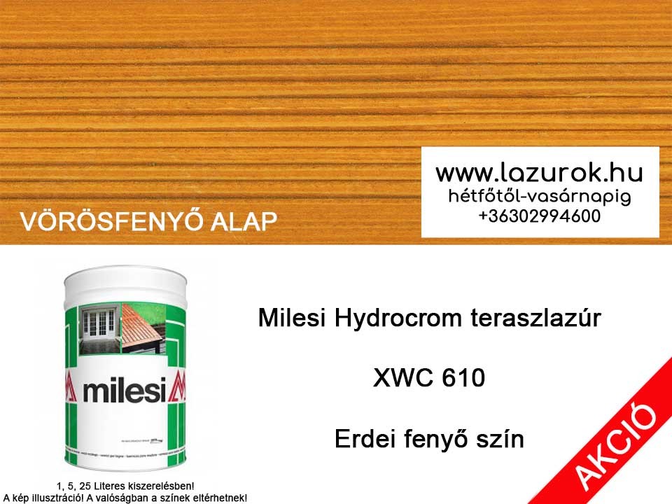 Milesi teraszlazúr, xwc 610, erdei fenyő, Hydrocrom, vizes bázisú teraszlazúr, fafelület kezelés, teraszlazúr 25L, Milesi XWC 610 vízbázisú teraszlazúr erdei fenyő szín 25L termék.