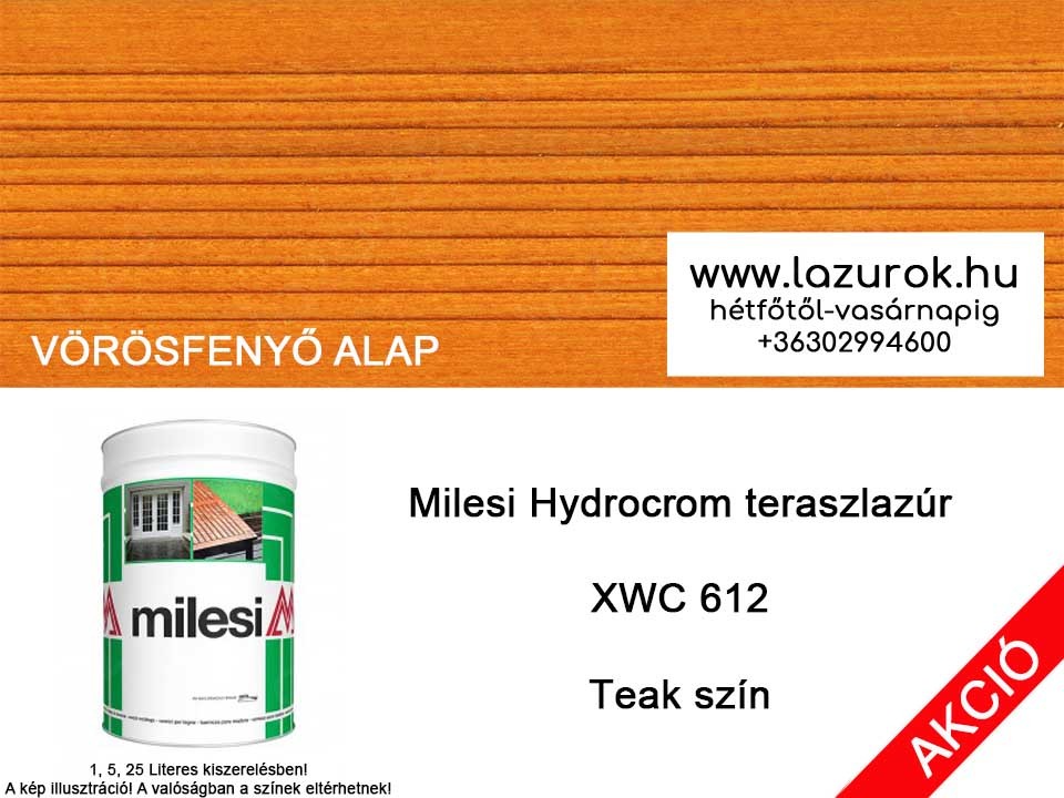 Milesi teraszlazúr, xwc 612, teak, Hydrocrom, vizes bázisú teraszlazúr, fafelület kezelés, teraszlazúr 25L, Milesi XWC 612 vízbázisú teraszlazúr teak szín 25L termék.