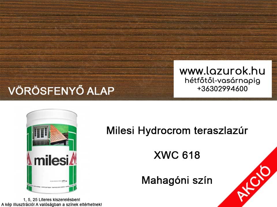 Milesi teraszlazúr, xwc 618, mahagóni, Hydrocrom, vizes bázisú teraszlazúr, fafelület kezelés, teraszlazúr 25L, Milesi XWC 618 vízbázisú teraszlazúr mahagóni szín 25L termék.