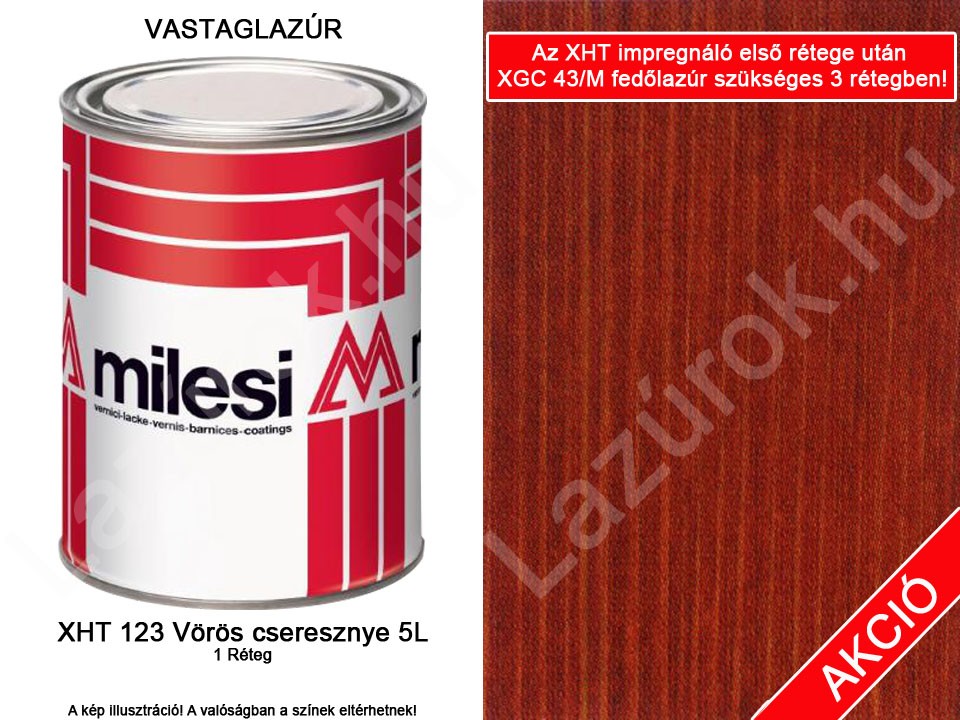 Milesi vastaglazúr, xht, 123, vörös cseresznye, Hydrocrom, xht alapozó, gombamentesítő impregnáló, fafelület kezelés, ajtó lazúr, ablak lazúr, Milesi Hydrocrom XHT 123 vörös cseresznye színű gombamentesítő impregnáló 5l termék.