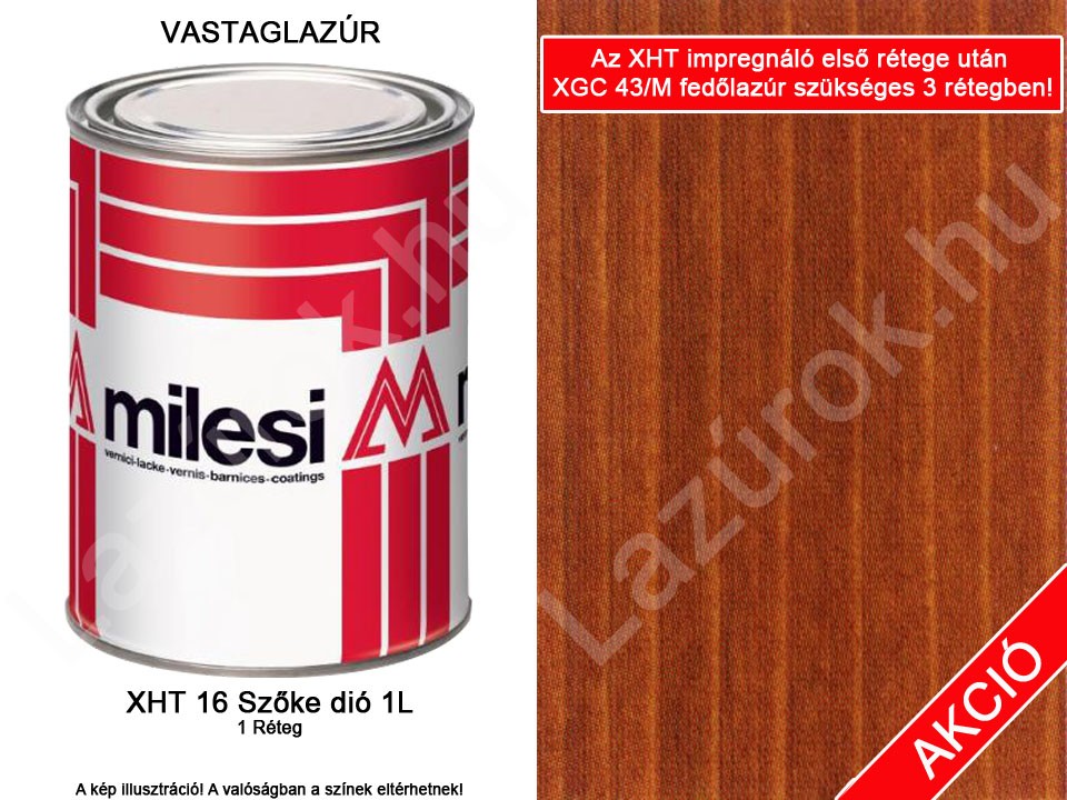 Milesi vastaglazúr, xht, 16, szőke dió, Hydrocrom, xht alapozó, gombamentesítő impregnáló, fafelület kezelés, ajtó lazúr, ablak lazúr, Milesi Hydrocrom XHT 16 szőke dió színű gombamentesítő impregnáló 1l termék.