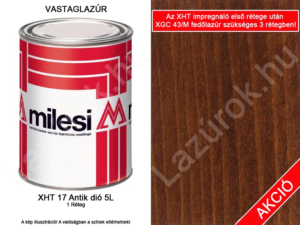 Milesi vastaglazúr, xht, 17, antik dió, Hydrocrom, xht alapozó, gombamentesítő impregnáló, fafelület kezelés, ajtó lazúr, ablak lazúr, Milesi Hydrocrom XHT 17 antik dió színű gombamentesítő impregnáló 5l termék.