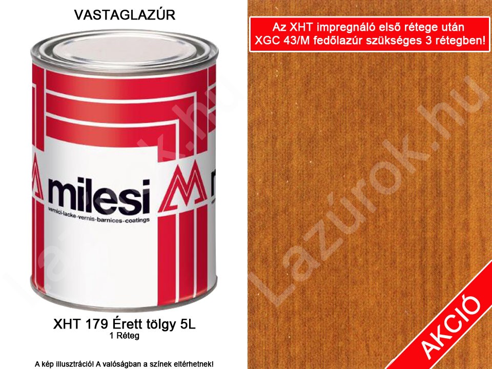 Milesi vastaglazúr, xht, 179, érett tölgy, Hydrocrom, xht alapozó, gombamentesítő impregnáló, fafelület kezelés, ajtó lazúr, ablak lazúr, Milesi Hydrocrom XHT 179 érett tölgy színű gombamentesítő impregnáló 5l termék.