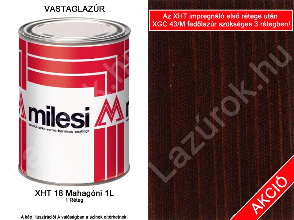 Milesi vastaglazúr, xht, 18, mahagóni, Hydrocrom, xht alapozó, gombamentesítő impregnáló, fafelület kezelés, ajtó lazúr, ablak lazúr, Milesi Hydrocrom XHT 18 mahagóni színű gombamentesítő impregnáló 1l termék.