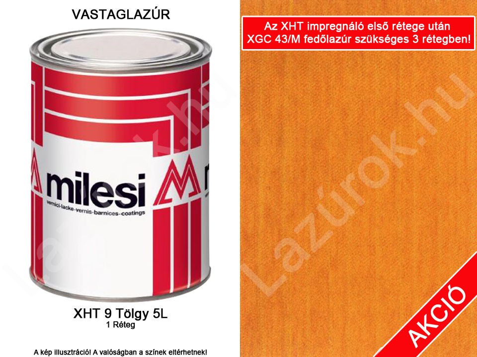 Milesi vastaglazúr, xht, 9, világos tölgy, Hydrocrom, xht alapozó, gombamentesítő impregnáló, fafelület kezelés, ajtó lazúr, ablak lazúr, Milesi Hydrocrom XHT 9 világos tölgy színű gombamentesítő impregnáló 5l termék.