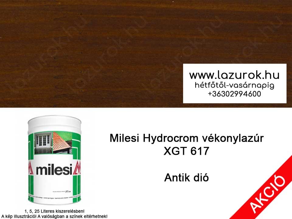 Milesi vékonylazúr, xgt 617, antik dió, Hydrocrom, xgt vékonylazúr, viaszos vékonylazúr, vizes bázisú lazúr, fafelület kezelés, Milesi Hydrocrom XGT 617 antik dió színű viaszos vékonylazúr 25l termék.