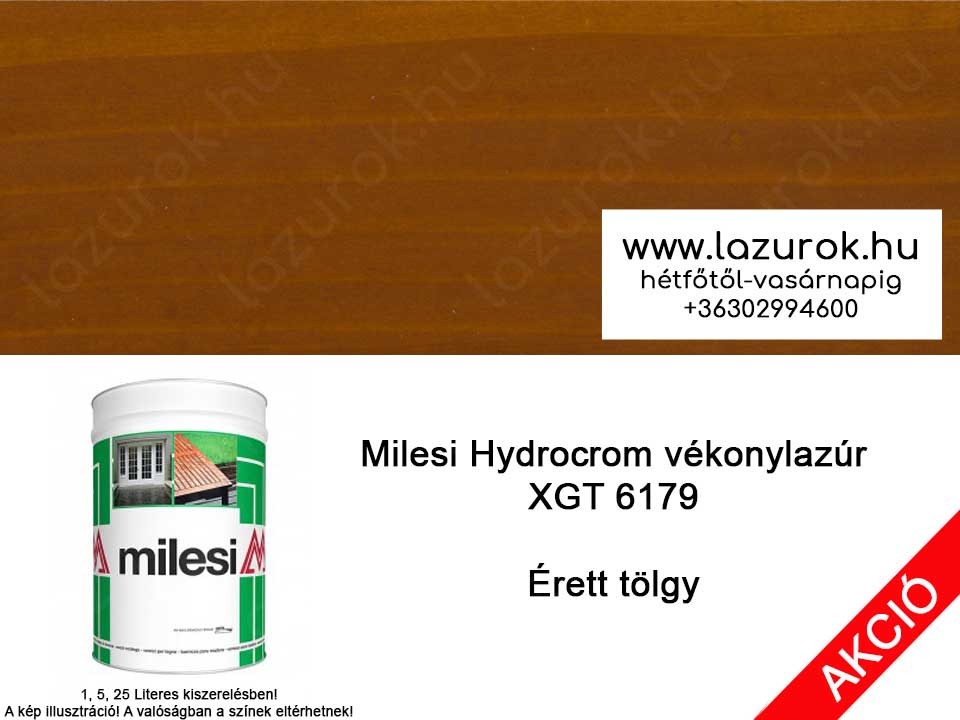 Milesi vékonylazúr, xgt 6179, érett tölgy, Hydrocrom, xgt vékonylazúr, viaszos vékonylazúr, vizes bázisú lazúr, fafelület kezelés, Milesi Hydrocrom XGT 6179 érett tölgy színű viaszos vékonylazúr 25l termék.